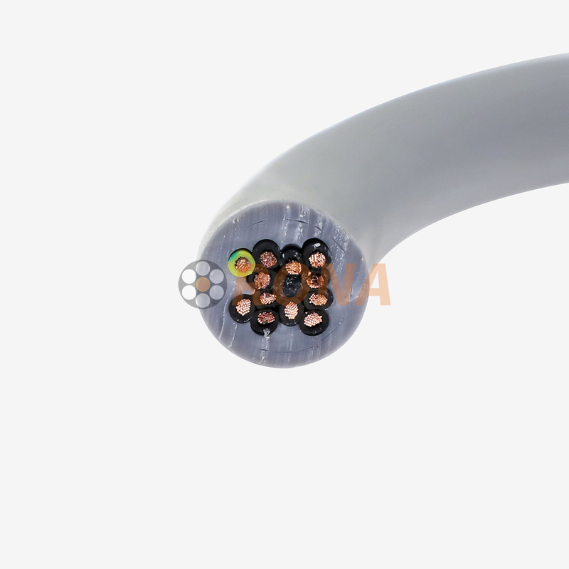 Construido con conductores de cobre múltiples (12 AWG, Stranding Clase 5) y una vaina flexible de PVC (dureza en tierra 75A), estos cables logran un radio de flexión apretado de 7.5 veces su diámetro. Esto les permite caber en cadenas de arrastre estrechas (≤50 mm de ancho) sin torcedura o fatiga durante el movimiento continuo.